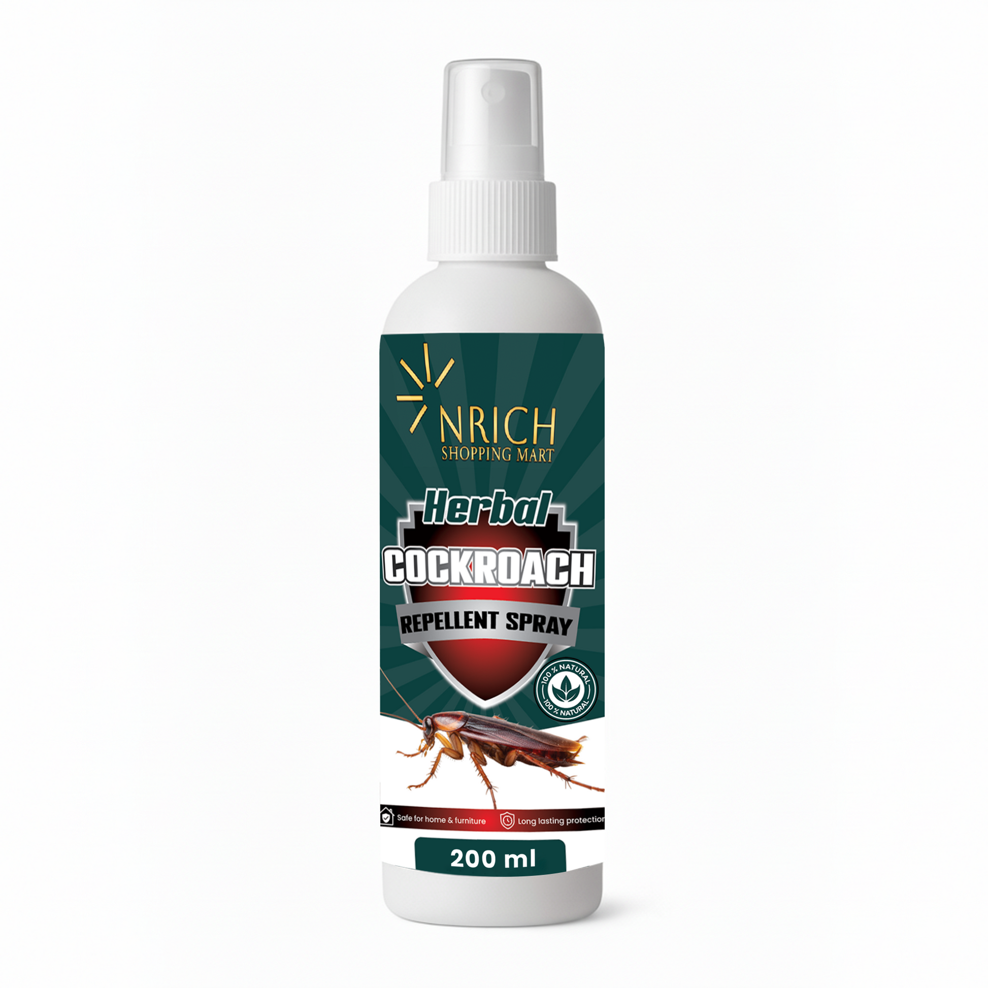 Nrich Herbal Cockroach Repellent Spray is a natural and eco-friendly way to keep cockroaches away from your home. Formulated with essential oils, this cockroach repellent works as an effective roach repellent for cockroach and provides a permanent solution for cockroaches without harmful side effects. Ideal for daily use, it can be applied in kitchens, bathrooms, cupboards, and corners where cockroaches usually hide. Unlike harsh sprays, this herbal cockroach repellent is safe for children, pets, and food-prep areas, making it the perfect choice for families. Use it as a cockroach repellent for kitchen or throughout your home to block entry points and create a protective barrier. With every spray, Nrich helps repel cockroaches naturally while leaving behind a fresh herbal fragrance. Whether you are searching for a natural cockroach repellent or a safe cockroach repellent spray for indoor spaces, Nrich provides long-lasting, herbal protection that works.